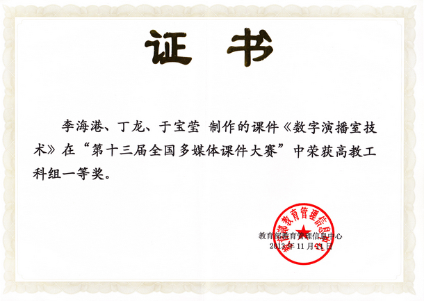 经过紧张激烈的现场演示和评审,我校教育与传媒学院李海港等教师制作的《数字演播室技术》荣获一等奖,实现了我校参赛以来一等奖零的突破;化学与化学工程学院李金龙等教师制作的《化工原理(网络版)》荣获二等奖;通信与电子工程学院苗凤娟等教师制作的《传感器技术及应用》获得三等奖。我校其它六个参赛课件获得优秀奖。同时,我校三名教师参加了大赛组织的微课比赛,李海港等教师的《虚拟演播室视频信号》获得三等奖,其他两个获得优秀奖。我校荣获大赛“最佳组织奖”。