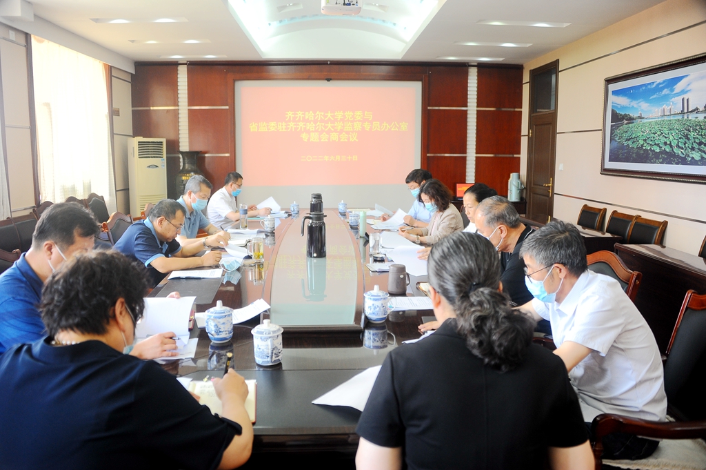 6月30日下午,齐齐哈尔大学党委与省监委驻学校监察专员办公室在学校办公楼504会议室召开学习贯彻习近平总书记重要讲话重要指示批示精神和重要文章有关工作专题会商会议。学校党委书记陈桂芝主持专项会商会议,学校党委常委参加会议,副校长李奇楠和相关职能部门负责人列席会议。