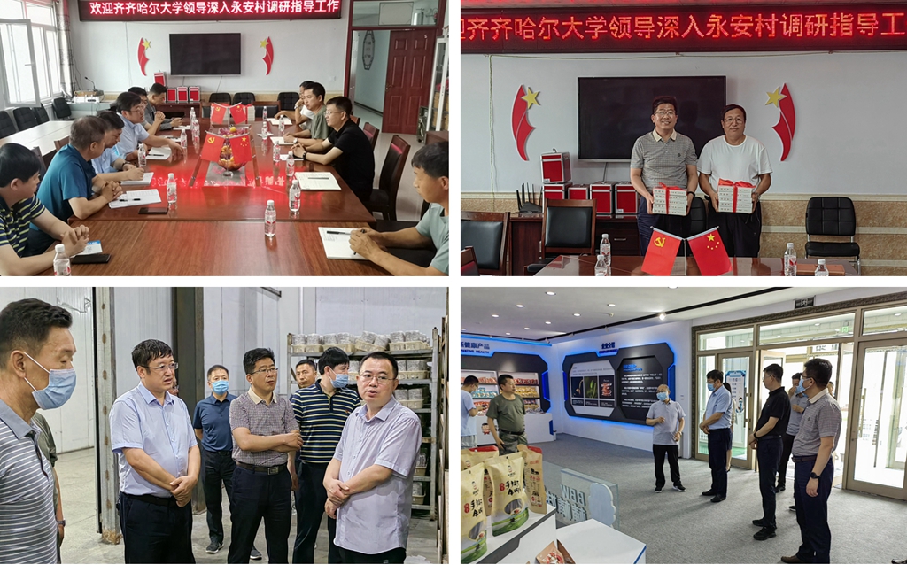 7月14日,校党委副书记张文治,校党委常委、组织部部长马文辉以及我校相关单位负责人深入到拜泉县上升乡永安村,慰问了我校驻村第一书记、队长秦浩波和工作队队员李新、夏金海,为他们送去了面、油等生活用品,并座谈交流,调研了驻村助力乡村振兴工作。张文治一行还深入拜泉县委党校(行政学校)、拜泉县鑫鑫菌业有限公司、黑龙江棒星食品科技股份有限公司开展了“访企拓岗促就业”活动。拜泉县委书记荣军,拜泉县委常委、宣传部部长常亮亮,拜泉县委常委、组织部部长王磊等县乡村领导陪同慰问驻村干部及“访企拓岗促就业”活动,就进一步深化校县合作共建进行了深入交流,达成了携手合作的共识。