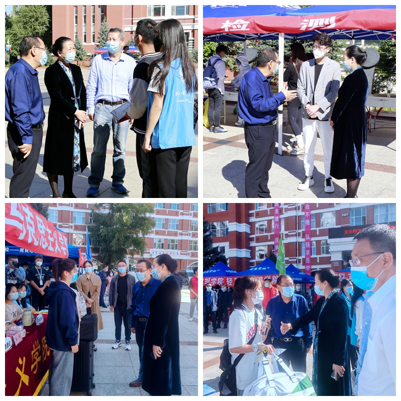 新生报到期间,校党委书记陈桂芝、校长董玉庭等学校领导,多次深入各学院新生报到处、核酸检测点、学生公寓等地,看望2022级新生,慰问参与迎新工作的师生员工。在迎新工作现场,陈桂芝、董玉庭与新生亲切交谈,询问入学报到情况,细致答疑解惑,并送上亲切问候与祝福。校领导对迎新工作的筹备工作给予高度评价,对迎新现场热情洋溢、精神饱满,精诚合作、细致周到的工作人员给予肯定,并勉励大家要再接再厉、圆满完成学校迎新工作。