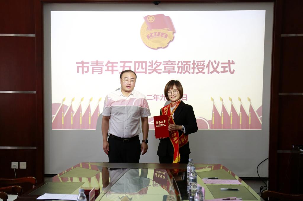 仪式上,葛弘博为第十届“齐齐哈尔市青年五四奖章”获得者、我校生命科学与农林学院李珊珊教授颁授奖章,并向她表示诚挚祝贺,希望她在今后工作中为鹤城广大青年作出表率,为齐齐哈尔市经济社会发展作出更大贡献。