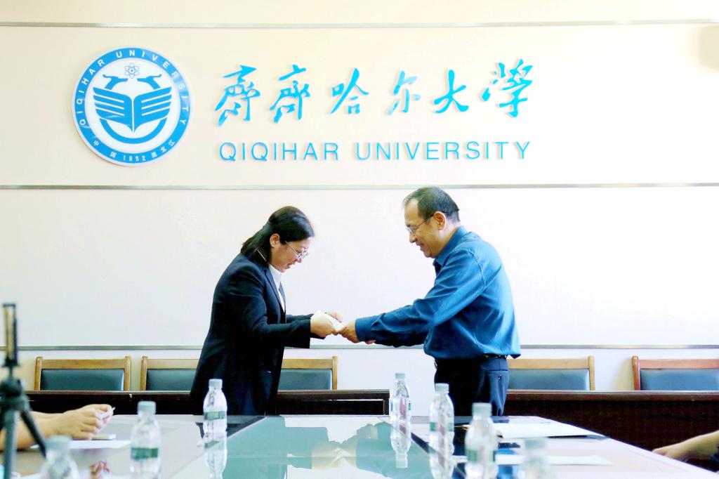 陈桂芝代表学校向李敬民校友心系母校捐资助学的反哺之举表示由衷的感谢和深深地敬意,并诚邀李敬民校友在母校70华诞之际,携亲友相聚齐大、共襄盛典。陈桂芝说,李敬民校友是我校20万齐大校友中的优秀代表,在个人事业取得辉煌成就的同时,热心公益慈善,积极关心和支持学校事业发展,用实际行动表达了对母校“一朝齐大人,一生齐大情”的拳拳赤子之心,让我们深为感动和自豪。陈桂芝表示,母校将传递校友爱心、用好校友捐赠,不断提高办学质量,努力办好人民满意大学,为党和国家努力培养更多更好的高素质人才。相信在全体师生、广大校友和社会各界朋友的共同努力下,齐齐哈尔大学一定会早日建成有特色高水平应用型综合大学!