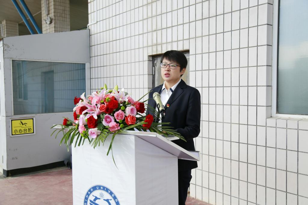 陈桂芝强调,青春逢盛世,青年当有为。作为新一代齐大学子,希望同学们树勤学之风,立创新之志,持守正之心,育爱校之情,弘扬新时代伟大抗疫精神,坚定爱党爱国的理想信念,坚持为国为民的家国情怀,坚持爱校如家的赤子情怀,努力争做有理想、有追求的大学生,有担当、有作为的大学生,有品质、有修养的大学生。将自己的理想融入到中华民族伟大复兴中国梦中,在青春的赛道上尽情奔跑,用坚定的信念与智慧的火花点亮未来的大学生活,努力成长为堪当民族复兴大任的时代新人,让青春绽放出更加绚丽夺目的光彩。