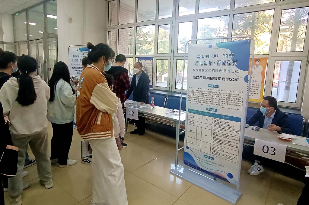 9月29日下午,台州市临海市人力资源和社会保障局携部分知名企业来到我校,在学生指导中心一楼大厅举办了齐齐哈尔大学临海市专场招聘会。