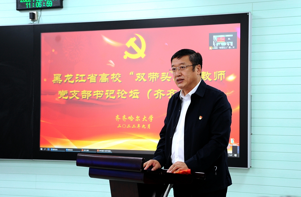 按照省委教育工委《关于推动高校基层党建服务振兴发展、深化提质增效的具体举措》的安排,9月29日上午,黑龙江省高校“双带头人”教师党支部书记论坛(齐齐哈尔)在我校中区养正楼智慧教室成功举行。