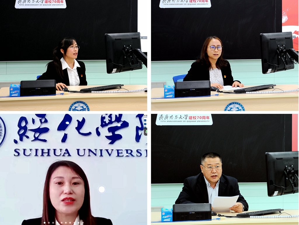 在领导点评环节,黑龙江交通职业技术学院党委委员、组织部部长周洪江,齐齐哈尔工程学院党委组织部部长王丹,齐齐哈尔理工职业学院党委副书记、组织部部长许颖,齐齐哈尔医学院组织部副部长马飞对教师党支部代表发言作了点评。