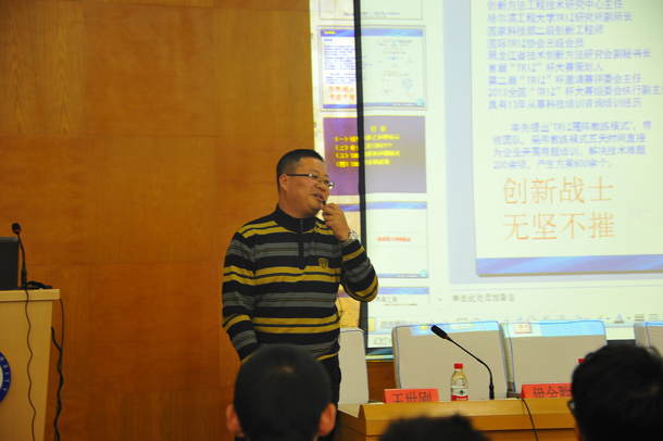 黑龙江省生产力促进中心创新方法与工程技术研究中心主任吴永志代表省生产力促进中心创新方法与工程技术研究中心向我校大学生“TRIZ”协会成立表示热烈地祝贺,并向与会人员概要介绍了“TRIZ”理论研究现状与发展趋势,和师生分享了自己近年来研究与探索“TRIZ”理论的体会与思考。