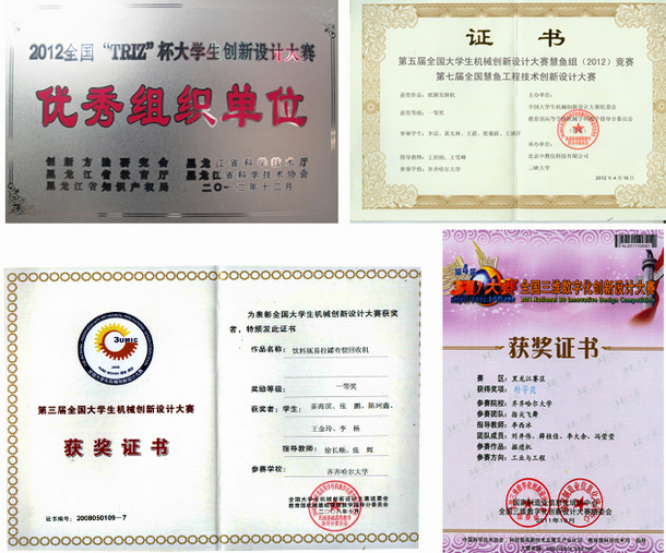 创造教育教学与实践中心指导教师和学生运用“TRIZ”理论进行了许多有意义的创新探索。同学们的作品中不仅有“深井救援机”获得国家发明专利、“多功能家具一体机”、“种子包衣机”等17项实用新型专利授权,还有“纸牌发牌机”等12项成果分别获得省级、国家级创新大赛的一、二、三、等奖。随着同学们对TRIZ理论的理解越来越深刻、热情越来越高涨,校级立项成果也不断地增加,2012年“全方位双向滚轮式手动剃须刀”等10项获得校级立项,2013年,“越障机器人”等13项获得校级立项。
