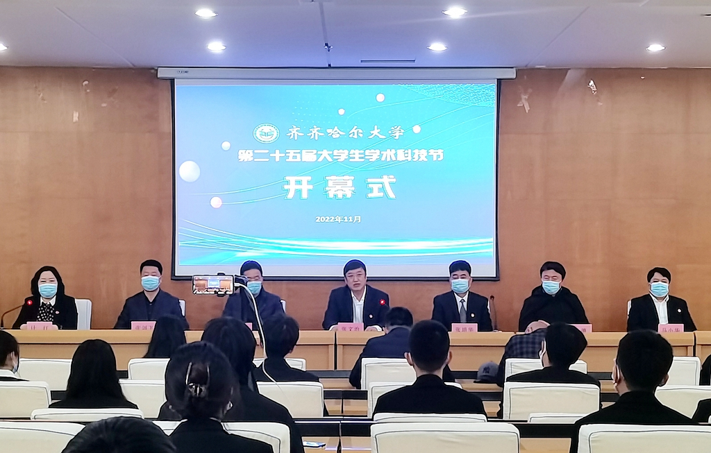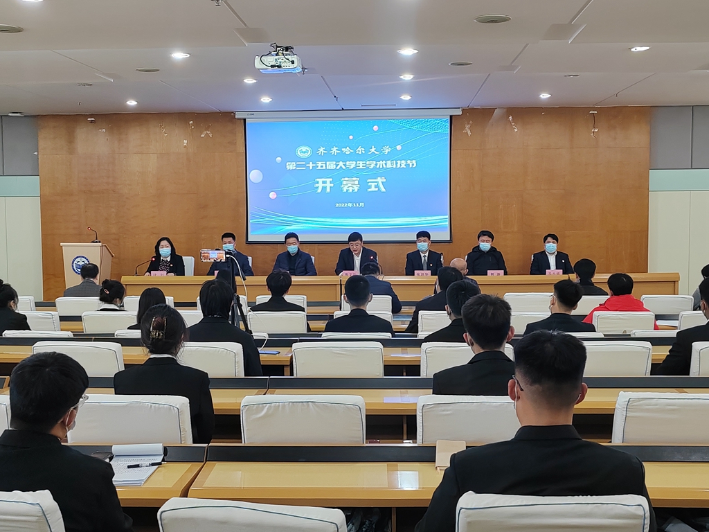 11月4日下午,以“青春逐梦新征程 科创报国向未来”为主题的齐齐哈尔大学第二十五届大学生学术科技节开幕式在守正楼七楼学术报告厅举行。校党委副书记、本届科技节组委会主任张文治,学校学生工作指导委员会部分成员单位负责人出席了开幕式,各学院、研究生部团委书记、团委副书记、部分学生代表通过钉钉平台直播的方式参加了开幕式。开幕式由校团委副书记计红主持。