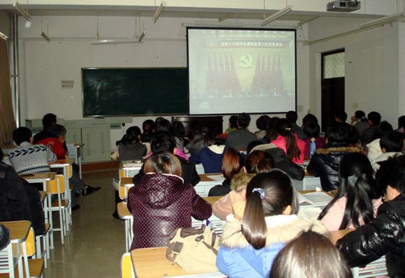 教育与传媒学院党委在传媒楼317,组织学院全体师生学习党的第十八届中央委员会第三次全体会议精神。会议由院党委书记于学江主持。学院领导班子成员出席会议,全体教师参加会议。