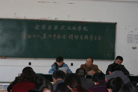 文学与历史文化学院召开党的十八届三中全会精神专题学习会,认真学习《中国共产党第十八届中央委员会第三次全体会议公报》、《中共中央关于全面深化改革若干重大问题的决定》,深刻领会党的十八届三中全会精神。学习会由学院党委书记张振民主持。我院教师、学生党员代表80多人参加了学习会。