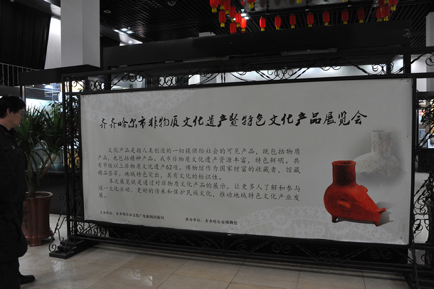 齐齐哈尔市非物质文化遗产暨特色文化产品展览会由齐齐哈尔市文广新局主办,市博物馆承办,该展览会旨在通过对非物质文化产品的展示,让更多人了解和参与这一文化活动,更好地传承和保护民族文化,推动地域特色文化产业发展。