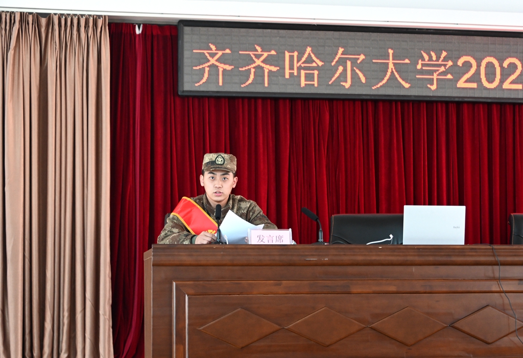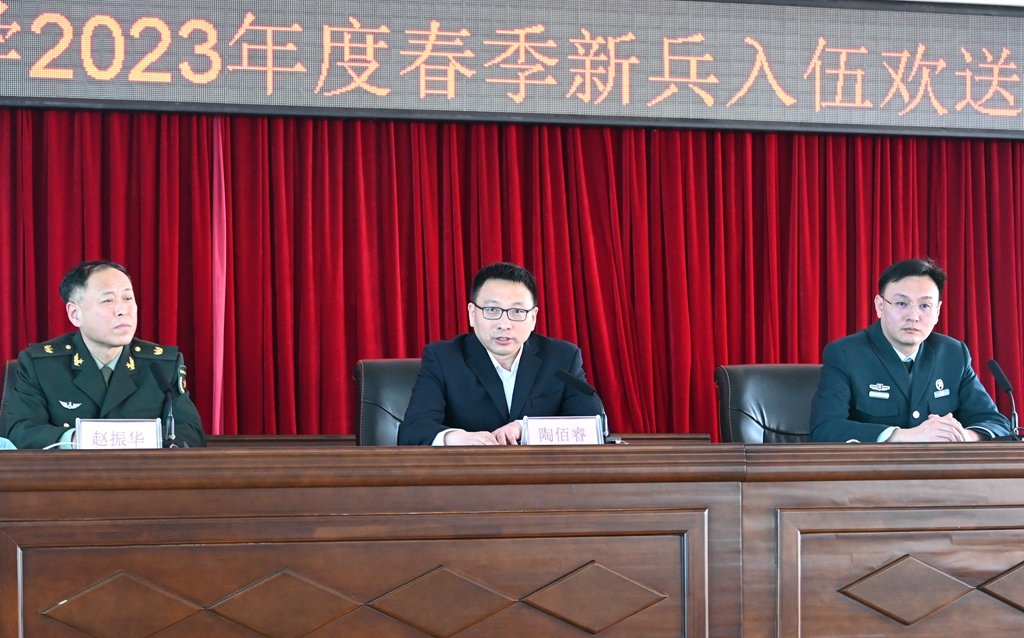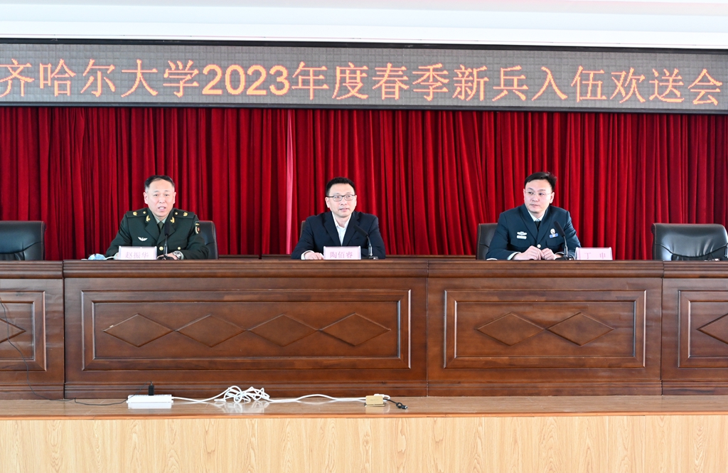 陶佰睿在讲话中为各位同学积极响应国家号召,携笔从戎,保家卫国,绽放青春的实际行动点赞。他对全体应征入伍新兵提出了三点希望:一是要提高政治站位,不忘初心使命。坚定拥护“两个确立”,增强“四个意识”、坚定“四个自信”、做到“两个维护”。同学们要在军营中历练成长,要把责任扛在肩上、把荣誉放置心中,用实际行动保卫祖国的繁荣与安宁;二是要磨炼顽强意志,锤炼过硬本领。同学们要珍惜军旅生涯,不怕苦累,认真训练,锻炼自己坚强的意志品质、过硬的军事素质,安心服役,争做新时代优秀军人;三是要传承母校精神,彰显齐大风采。学校永远是同学们最坚强的后盾、最温暖的港湾,希望同学们把齐大精神带到部队,让齐大精神在军营里闪光,为母校增光添彩。