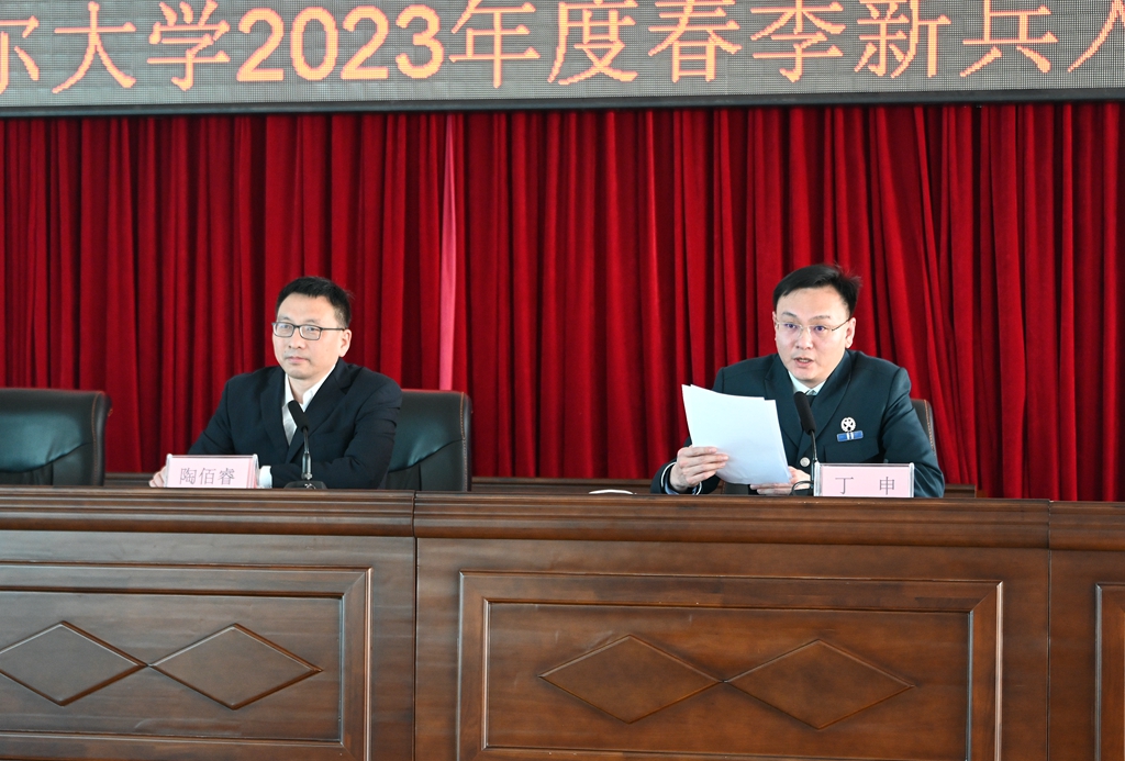 3月14日下午,齐齐哈尔大学2023年春季新兵入伍欢送会在求实楼五楼会议室举行。校工会主席、党委常委陶佰睿,建华区人民武装部政工科科长丁申出席会议,武装部(保卫处)、相关学院主管学生工作领导、退役大学生士兵代表、2023年春季确定应征入伍学生及齐齐哈尔大学参军预备队全体队员参加会议,武装部(保卫处)部(处)长赵振华主持会议。