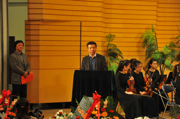 副校长李英杰在致辞中说,在这硕果累累的金秋时节,我们欢聚一堂,迎来了一场精彩的民族音乐的盛会。我谨代表齐齐哈尔大学全体师生向应邀出席音乐会的各位领导、各位来宾表示热烈的欢迎!他表示,多年来,齐齐哈尔大学作为“黑龙江省西部地区文化传承与发展研究基地”,打造了诸多的文艺精品,在传承、发展、引领区域文化工作中形成了比较优势和办学特色,为促进社会主义文化大发展大繁荣做出了贡献。“丁笛”研发的过程即充分体现了大学文化传承与创新的职能。“丁笛”培训基地的建设,是我校开展文化艺术教育的有效形式,是不断提升大学生审美修养和人文素养的有效手段,对于促进青年学生全面发展具有重要意义,必将为文明城市建设、民族音乐文化的传承与发展做出积极的贡献。