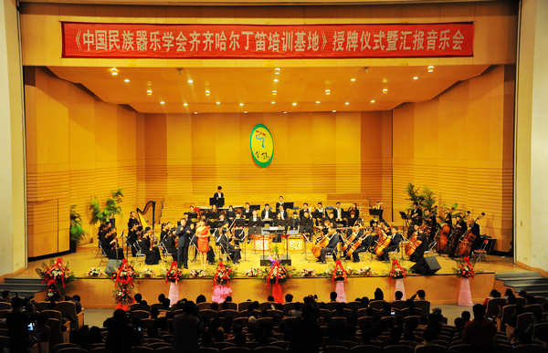 授牌仪式结束后,丁笛发明人、路文明、路文汉兄弟俩携手齐齐哈尔大学交响乐团、市委老干部局雅菊民族乐团、齐齐哈尔大学民族乐团等举行了丁笛专场汇报音乐会。