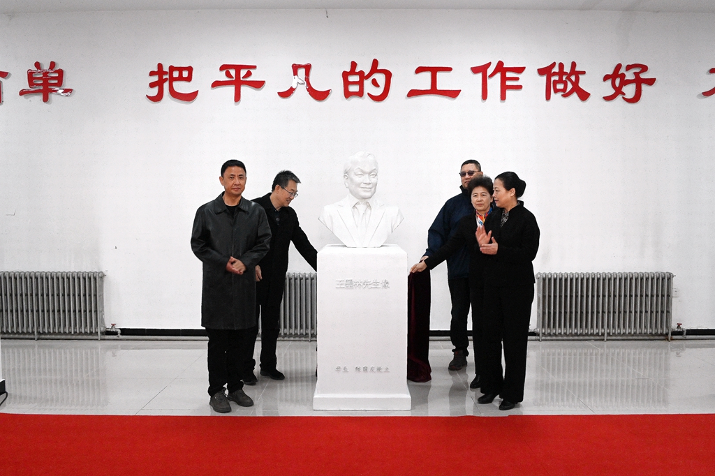 陈桂芝、陈国庆、何玉华、张波、王彦民共同为王墨林先生塑像揭幕