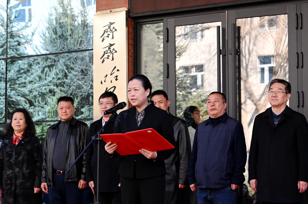 校党委书记陈桂芝在致辞中首先代表全校师生员工,向塑像捐赠人陈国庆校友对母校、对师者感恩之善举表示衷心地感谢。她指出,为王墨林先生立像,就是深切缅怀以王墨林先生为代表的老一辈齐大先贤的发展功绩,感召和激励广大师生校友传承齐大精神,续写和创造学校发展的新篇章。今天的齐大,已经发展成为龙江西部地区规模最大、层次最齐、门类最全、经济社会契合度最高的省属综合性大学。历史发展的接力棒已经交到我们这一代齐大人手中,吾辈当不负党的重托,不负人民希望,不负伟大时代,将齐大梦融入中国梦,将齐大发展融入龙江振兴、融入强国建设、民族复兴之路,用汗水、赤诚与荣光把“齐齐哈尔大学”的名片擦得更美更靓。