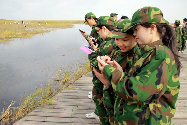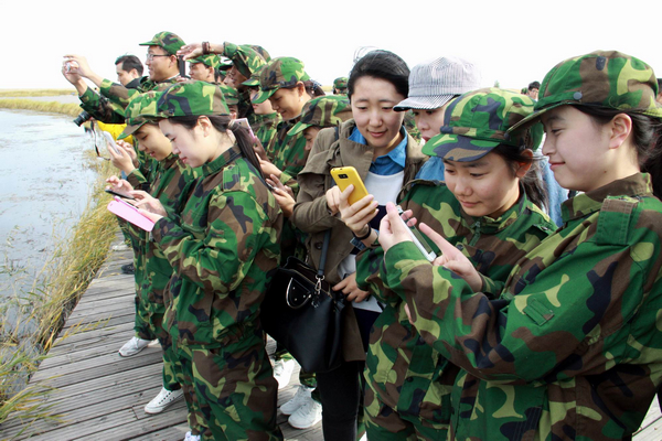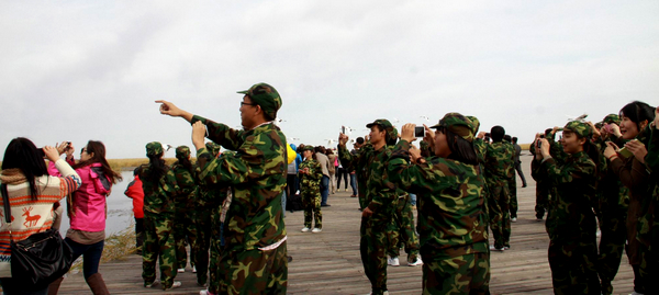“这就是‘传说中的扎龙’啊,好清爽啊,丹顶鹤在哪里……”下了大巴车,身着迷彩服的学生们,眼神中充满了欣喜与惊奇,更多的是在寻找丹顶鹤的踪影。“同学们,我们快上电动车,一会儿就能看见美丽的丹顶鹤了!”导游细心地引导学生们登上电动车,驶向神秘而又令人向往的扎龙湿地。沿途的风光更是迷住了学生们的眼睛。