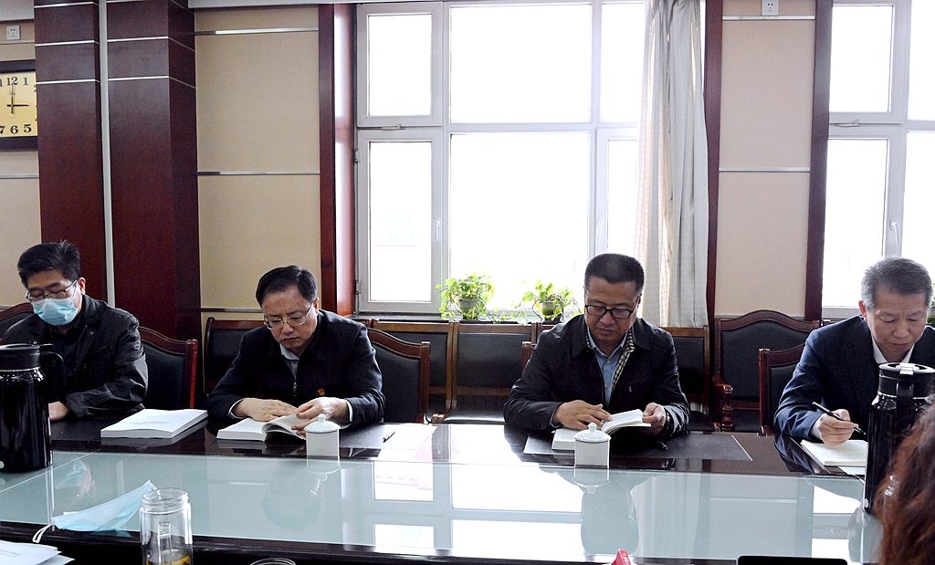 4月19日下午,学校领导班子学习贯彻习近平新时代中国特色社会主义思想主题教育专题读书班在办公楼504会议室开展第三天集中学习,校长、党委副书记董玉庭主持学习活动。
