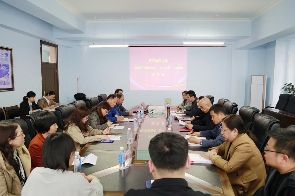 5月5日下午,学校在中区办公楼519会议室召开纪念中共中央发布“五一口号”75周年座谈会。校党委副书记齐宏伟出席会议,各民主党派、统战团体班子成员,各级政协委员、无党派人士代表参加座谈,会议由党委统战部部长孔维海主持。