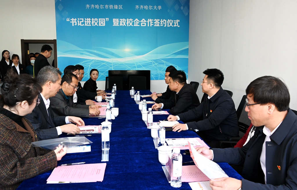 5月10日上午,齐齐哈尔市人大常委会副主任、铁锋区委书记陈宝柱携区委区政府相关负责人以及各相关单位主要领导和企业负责人来我校开展校企战略合作洽谈交流。