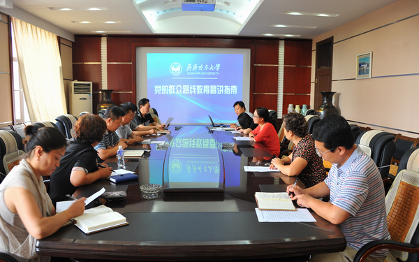 8月19日下午,新学期开学第一天。我校在中区办公楼504会议室召开“开展党的群众路线教育实践活动专题宣讲工作部署会”,校党委常务副书记、校开展党的群众路线教育实践活动领导小组副组长王凤琴主持会议并讲话。学校开展党的群众路线教育实践活动专题宣讲团成员参加了会议。