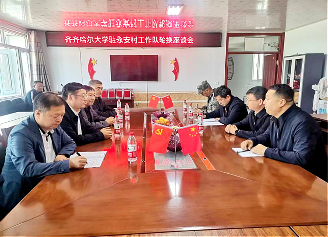 5月16日,学校党委副书记张文治带队赴拜泉县上升乡永安村,送新一轮驻村工作队员到岗并召开见面座谈会。