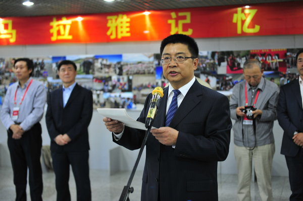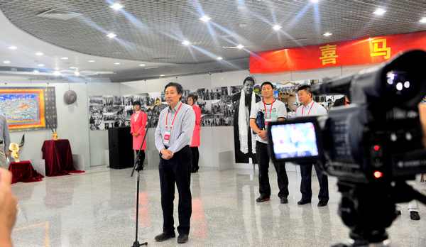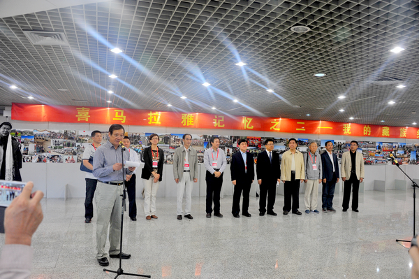 副校长邓启刚宣布:“‘喜马拉雅的记忆之二——我的藏族乡亲·李海红摄影作品展’开幕!”