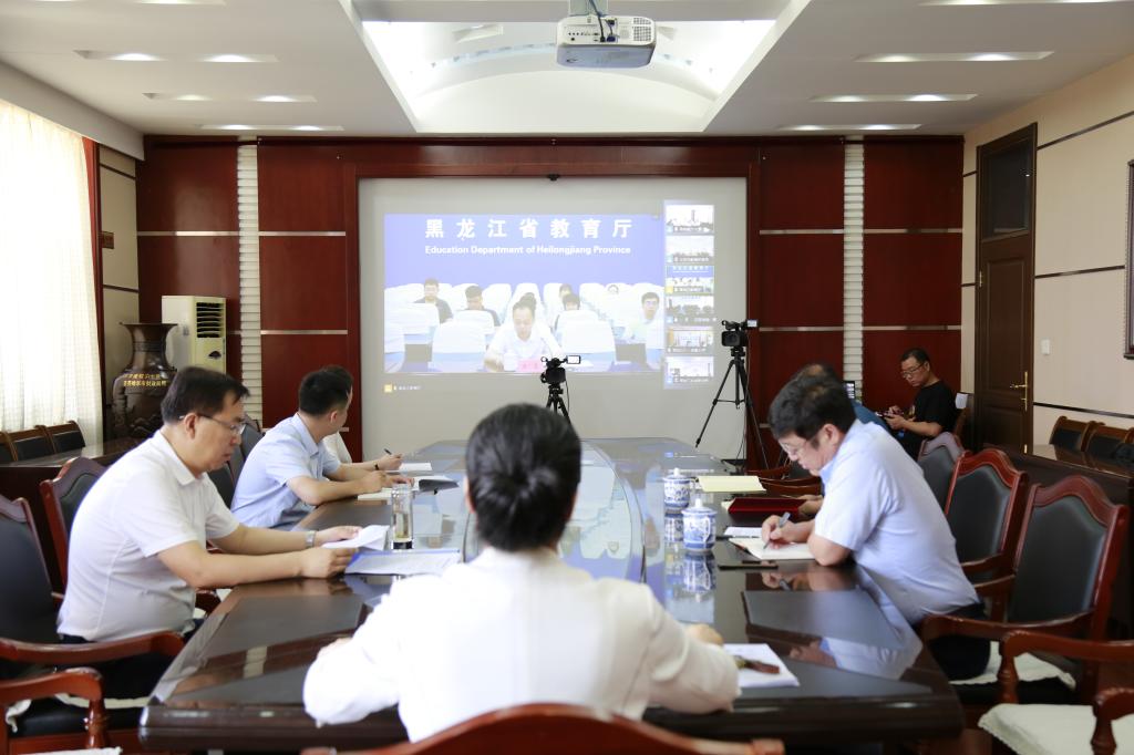 会议采用腾讯视频会议召开。省委教育工委副书记王震出席会议并讲话。大庆市教育局、北安市教育局、齐齐哈尔大学、黑龙江农业职业技术学院等单位交流发言。省教育厅全面推进乡村振兴工作领导小组成员处室主要负责同志,各市(地)教育局主要领导、主管领导、相关工作人员,全省有关普通高校主要领导、主管领导、相关工作人员参会。我校党委书记陈桂芝,校长郝文斌,校党委副书记张文治,校党委常委、组织部部长马文辉及有关部门负责人在504会议室视频分会场参会。
