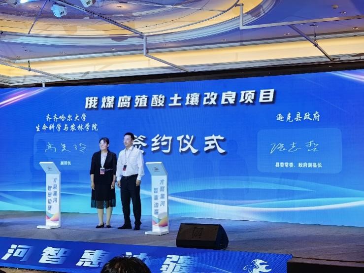 活动期间,高美玲教授与逊克县政府签订了《俄煤腐殖酸土壤改良项目》合作协议。