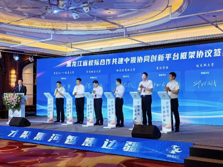 7月23日-24日,“高校•黑河行”活动暨“才聚黑河智惠边疆”市校合作交流推进会在黑河市举行。会上,张文治同来自中俄31所高校的近百名专家学者齐聚黑河,就科研平台延伸、科技成果转化、人才智力交流、人才联合培养等方面问题进行了深入交流。