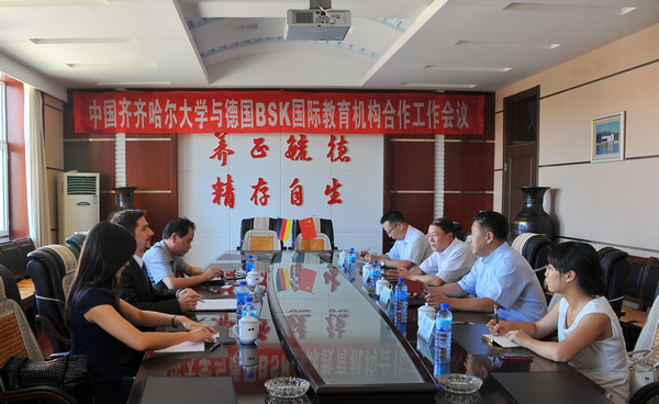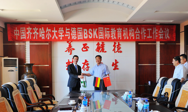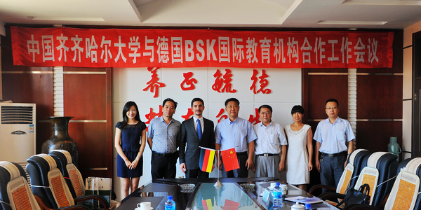 德国BSK国际教育机构主要是在欧洲和亚洲广泛开展跨国高等教育国际化的合作与交流,即“BSK德国大学联盟国际教育计划”。我校于2010年9月与该机构建立联系,双方签署了《中德教育交流与合作框架协议书》。2011年3月,我校代表团应邀赴德国考察,根据中德双方签订的相关协议,我校启动《中德合作培养硕士学位研究生项目》,全面推动中德双方在人才培养、教师进修、学术和科研等方面的合作与交流。2011年6月,“德国BSK国际教育机构——齐齐哈尔大学德语中心”揭牌。近三年来,中德双方合作项目进展顺利,并取得了较好成效。