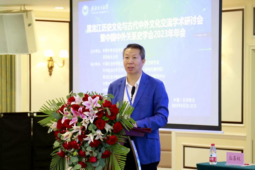 8月26日,由中国中外关系史学会、齐齐哈尔大学主办,中国社会科学院古代史研究所古代文化史研究室、齐齐哈尔大学文学与历史文化学院(新闻传播学院)、黑龙江省少数民族历史文化遗产保护与传承研究中心、中国中外关系史学会中外文化交流史研究专业委员会、中国中外关系史学会中日关系史研究专业委员会、中国中外关系史学会丝绸之路研究专业委员会承办,昂昂溪区遗址博物馆协办的黑龙江历史文化与古代中外文化交流学术研讨会暨中国中外关系史学会2023年年会在齐齐哈尔和美酒店举行。