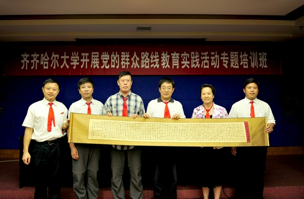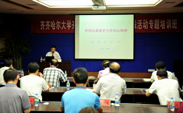 我校党委常务副书记王凤琴在讲话中,对井冈山大学的周密安排、精心组织、周到服务、热情接待表示感谢。她指出,在齐齐哈尔大学开展党的群众路线教育实践活动全面启动的重要时刻,组织这批井冈山专题培训班,具有重要的特殊意义。她指出,这次专题培训,是我校深入开展党的群众路线教育实践活动重要内容,也是一次特色活动;是我校进一步凝聚精神力量,促进学校科学发展的重要举措;是学校创新干部教育培训模式,实施干部素质提升工程的一次拓展和延伸。井冈山是中国革命的摇篮,是党的群众路线的发源地之一,井冈山精神是中华民族宝贵精神财富。目前,我校建设有特色、高水平、教学研究型综合大学的发展目标已经确立,能否实现发展目标,很重要的一点取决于全校上下干部教师的精神状态和干事创业的水平。我们这次来到井冈山举办专题培训班,就是要通过专题教学、现场教学、体验式教学等形式,继承革命传统,学习井冈山精神,提升干部素质,凝聚精神力量,促进学校各项事业更好更快发展。她要求,全体学员从加强党的群众路线教育,优化党的作风的政治高度,从提高干部队伍素质,推进学校事业更发展的现实高度,充分认识这次培训的重要意义,以饱满的热情、严谨的态度、务实的作风完成好这次学习任务。一是要集中精力,认真学习。要按照教学安排,认真学习井冈山革命斗争的历史,深刻理解和把握井冈山精神,通过学习,真正做到心灵受到震撼,灵魂得到净化、党性得到锤炼,精神得到升华。二要联系实际,深入思考。要结合自己的岗位要求的工作实际,思考我们应如何传承井冈山精神,践行井冈山精神,发挥好党员、干部、民主党派(团体)负责人和思想政治理论课教师在高水平大学建设中的作用,与广大教职员工一道为学校事业的发展贡献力量。