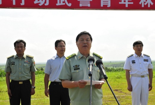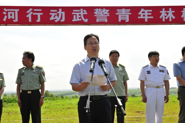 陈国桢在讲话中高度评价武警青年林建设是一项功在当代利在千秋的公益事业,是加强警政、警民团结,警地共同推进生态文明建设的具体举措。