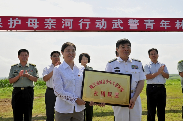 仪式上,武警部队向龙江县人民政府捐赠项目资助资金,“嫩江流域青少年生态环保社团联盟”成员单位的代表齐齐哈尔大学团委副书记苏醒接受了解放军总政治部组织部副部长蔡善飞的授牌,出席活动的领导还为青少年生态监护队授旗。