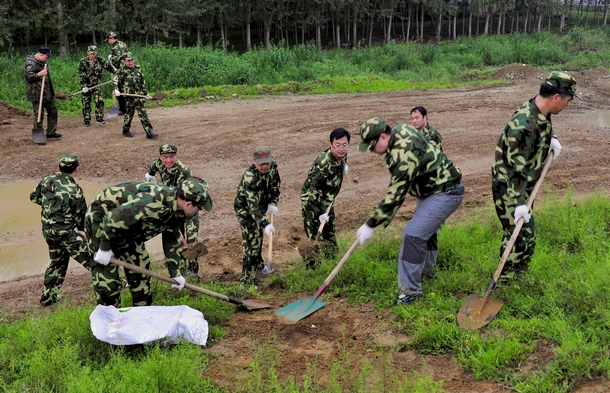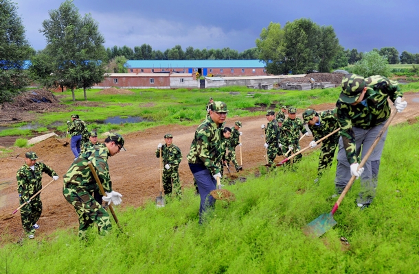 8月7日早7时,我校抗洪抢险突击队奔赴嫩江大堤我校责任段,冒雨开展护堤工作。