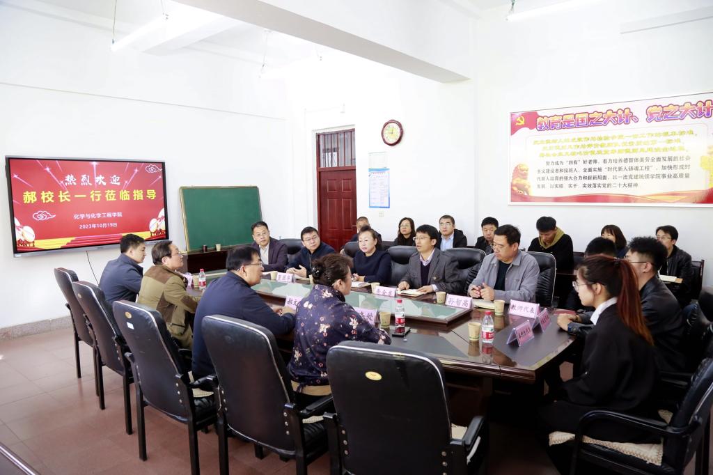 10月19日上午,校长郝文斌在相关部门负责人陪同下,深入化学与化学工程学院调研。化学与化学工程学院班子成员、各系部(中心)主任、学术骨干、辅导员代表、研究生和本科生代表参加调研座谈会。