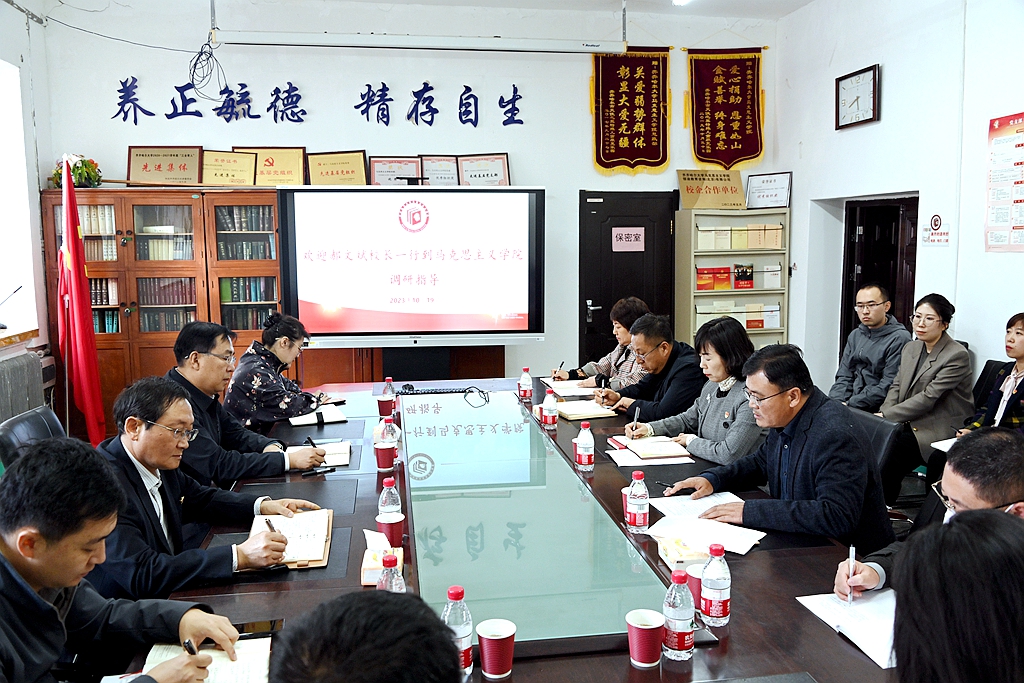 10月19日下午,校长郝文斌在相关部门负责人陪同下,深入马克思主义学院调研指导学院建设工作,征集学院干部师生对学校建设、改革与发展的意见和建议。