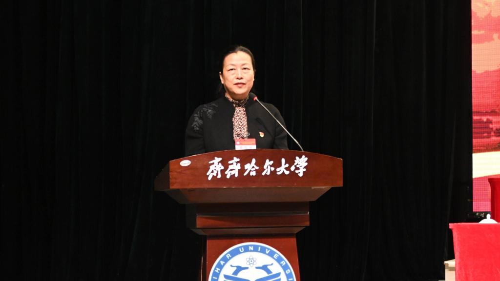 学校党委书记陈桂芝代表学校党委对本次大会的召开表示热烈祝贺。她在讲话中指出,自学校第五次学生代表大会暨第三次研究生代表大会召开一年来,我校学生会和研究生会坚持以习近平新时代中国特色社会主义思想为指导,认真贯彻落实学校党委和上级学联工作要求,紧紧围绕学校中心工作,服务大局、服务师生,团结带领广大青年学生,在深化学生会组织改革、促进教育教学、加强校风学风、丰富校园文化、助力学生成长成才等方面做了大量卓有成效的工作,为学校的建设和发展贡献了青春力量。全校广大青年学生要始终牢记习近平总书记的殷切嘱托,坚定不移听党话、矢志不渝跟党走,叫响做实“身在最北方、心向党中央”的忠诚誓言,心有所向、志存高远,做有理想的新时代齐大青年;敢为人先、迎难而上,做敢担当的新时代齐大青年;百折不挠、刚健有为,做能吃苦的新时代齐大青年;拼搏进取、勇毅前行,做肯奋斗的新时代齐大青年,以实际行动推进我校有特色高水平应用型综合大学建设事业,全力服务黑龙江高质量发展、可持续振兴,在强国建设、民族复兴新征程上,凝心聚力跟党走、踔厉奋发建新功!
