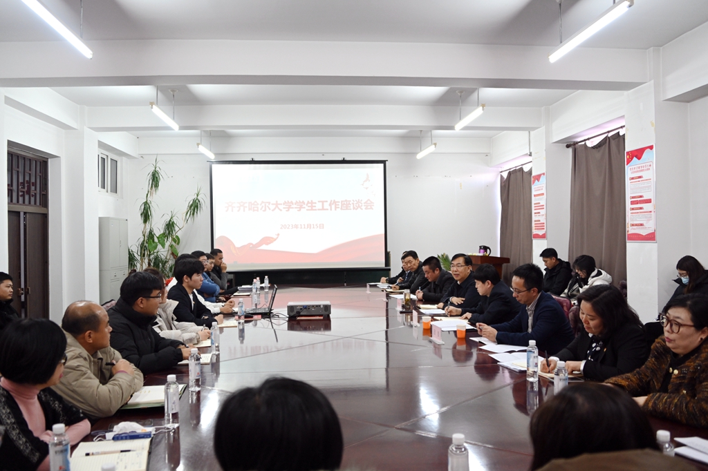 11月15日下午,学校在中区11教516会议室召开学生工作座谈会,校长郝文斌出席会议,广泛听取一线辅导员、学生代表对学校建设、改革与发展的意见建议。学生工作部(学生处)、招生就业处、团委等职能部门负责人,22名辅导员和14名学生代表参加了座谈会,会议由学生工作部(学生处)部(处)长杜海权主持。
