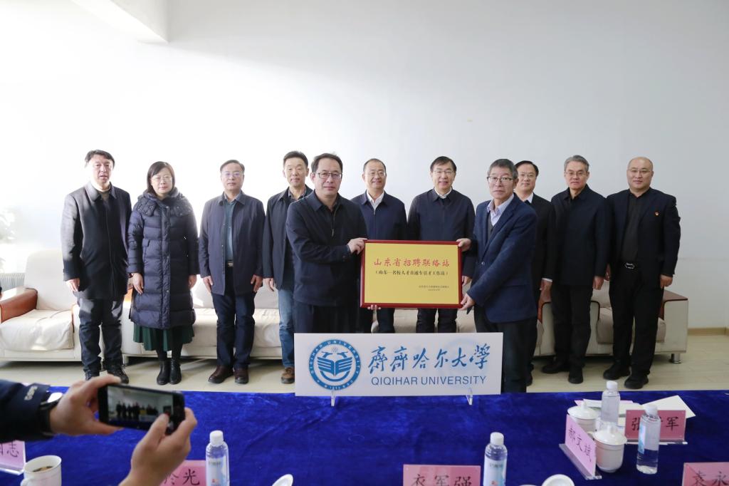 山东省公共就业和人才服务中心人才服务处处长张於光为我校成为山东省招聘联络站授牌,张树军代表学校接受牌匾。