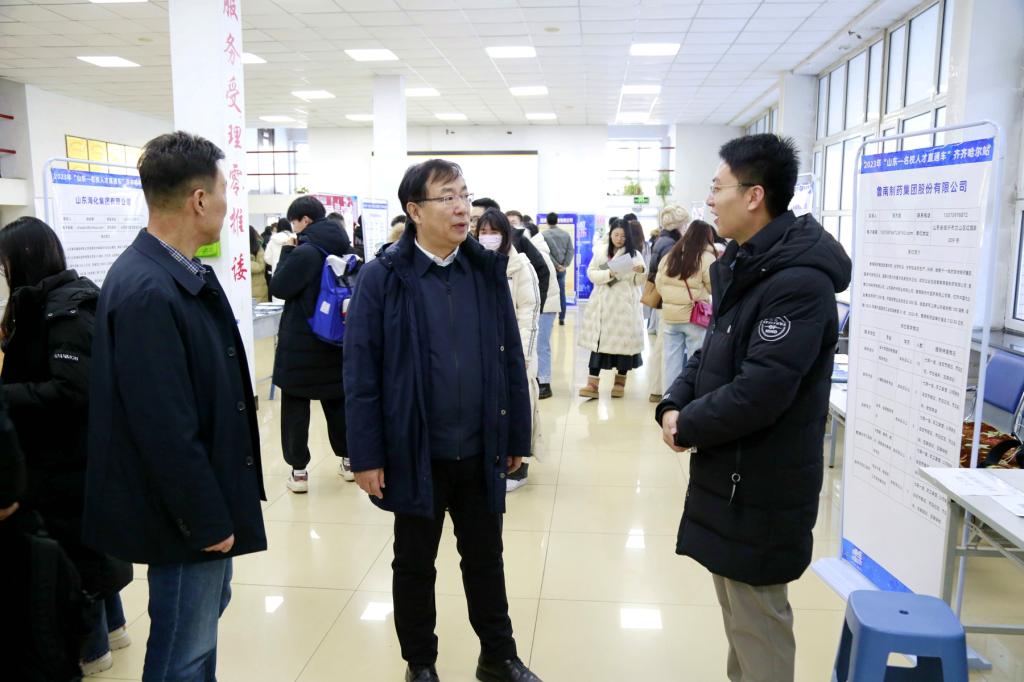 11月28日上午,山东省人力资源社会保障厅党组成员、副厅长衣军强,东营市市委组织部副部长、市人社局党组书记、局长袁永鹏,东营经济技术开发区党工委委员、组织人事部部长李旭山带队来到我校,开展“山东——名校人才直通车”校园引才活动。