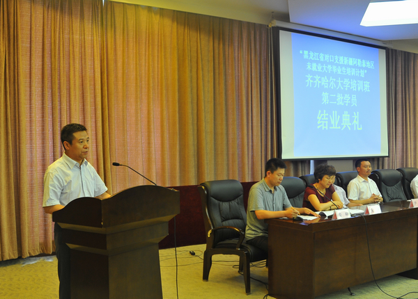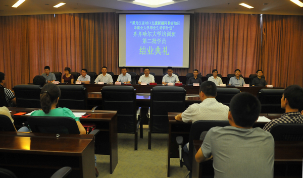 6月27日下午,我校在德润大厦四楼会议室隆重召开“‘黑龙江省对口支援新疆阿勒泰地区未就业大学毕业生培养计划’齐齐哈尔大学培训班结业典礼。