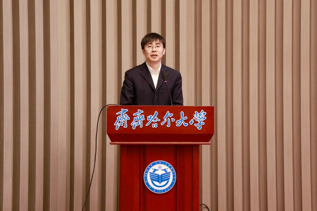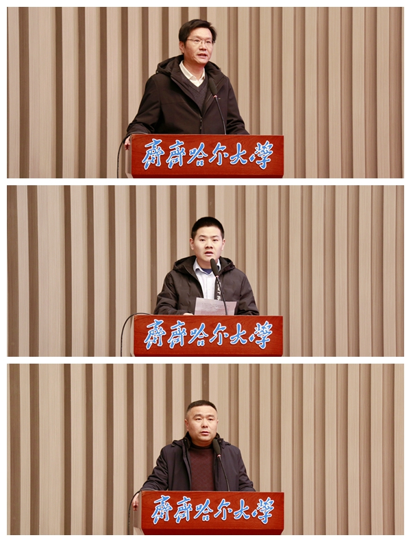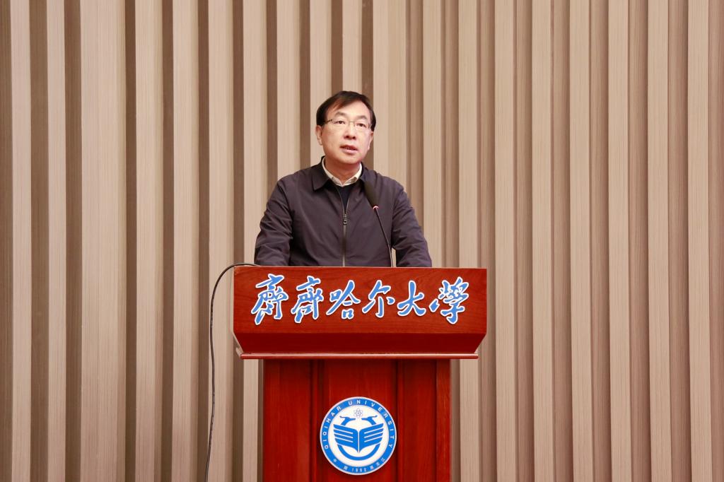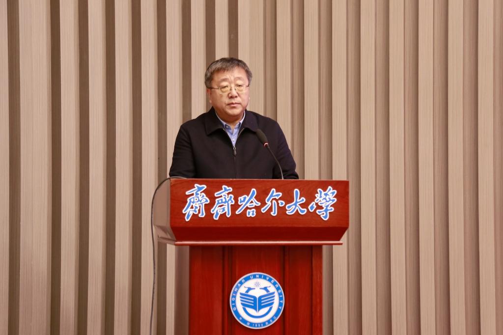郝文斌强调,新征程上,齐齐哈尔大学将深入贯彻落实习近平总书记视察我省期间的重要讲话重要指示精神,按照省委、省政府工作要求和省委教育工委、省教育厅工作安排,切实落实全省创新发展大会部署和《新时代龙江创新发展60条》等政策要求,积极助力创新龙江建设,积极参与高校科研成果“进企业、进园区、进县域”专项行动,深度对接服务我省加快构建“4567”现代化产业体系,推进科技成果从“实验室”走向“生产线”,切实把科教优势、科研优势、人才优势、学科优势转化为发展的新动能新优势,切实把科技创新“关键变量”转化为助力龙江振兴发展、助力区域经济社会发展的“最大增量”,为龙江高质量发展可持续振兴、为鹤城全面振兴作出齐大贡献。