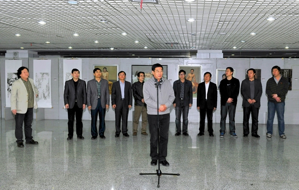 开幕式由美术与艺术设计学院副院长张进平主持,美术与艺术设计学院院长马振庆致开幕词,校长助理、教务处处长张树军致辞。齐齐哈尔师专、我校教务处、实践教学与设备处、美术与艺术设计学院的领导和师生参加了画展开幕式。
