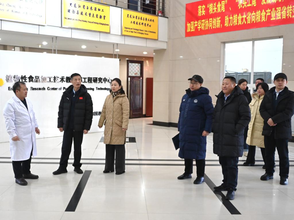 调研组一行先后深入食品与生物工程学院、生命科学与农林学院调研。食品与生物工程学院院长任健介绍了我校作为黑龙江省玉米深加工产业技术创新战略联盟理事长单位在玉米精深加工产业技术创新方面的突出特色和重要贡献,校企合作、产教融合所取得的成果。