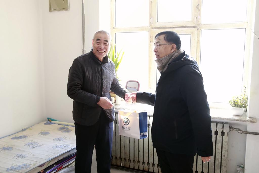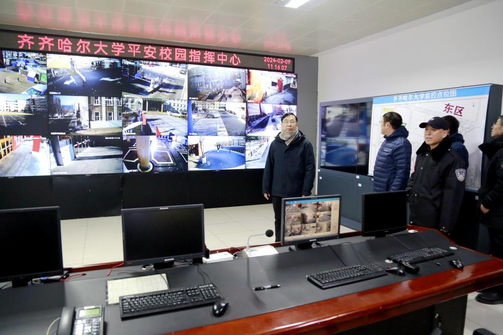 岁月更迭,初心依旧。新岁序开,同赴新程。2月9日,正值甲辰龙年大年三十,在新春佳节来临之际,校长、校党委副书记郝文斌先后来到南校区门卫室、西二区变电所、校网络信息中心值班室、中区门卫室、学校总值班室、教务处信息中心、校110指挥中心、鑫三星物业办公室、校伙食科总值班室、东区门卫室、德润大厦等地,看望并慰问了依然值守在校园一线岗位的职工和在校留学生,为他们送去了慰问品和新春祝福。校党委副书记张文治、副校长张树军及相关单位负责人陪同走访慰问。