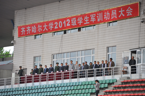 校党委副书记、军训团政委盖元臣,常务副校长、军训团政委郑喜群,副校长、军训团团长李英杰,参训部队首长、武警齐齐哈尔支队政治部主任朱殿波上校,校长助理、党校办主任、军训团后勤处处长尹鸥出席动员大会,军训团成员、各学院党委书记以及来自承担我校军训任务武警齐齐哈尔支队72名教官、2012级全体参训学生参加了动员大会。动员大会由学校武装部部长、军训团参谋长邵丙军主持。